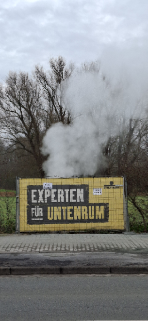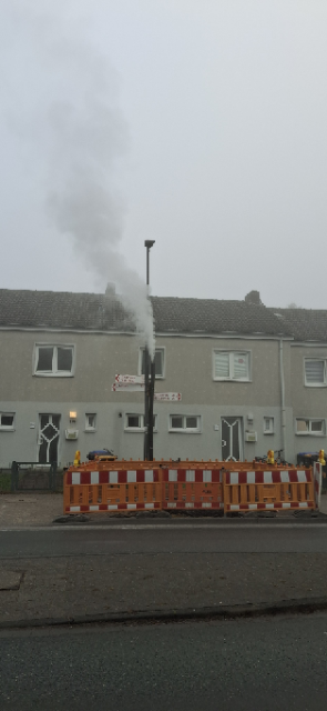Die Quelle dieses ungewöhnlichen Schauspiels ist vermutlich die Fernwärmeleitung Richtung Coerde bzw. ein Defekt an dieser.